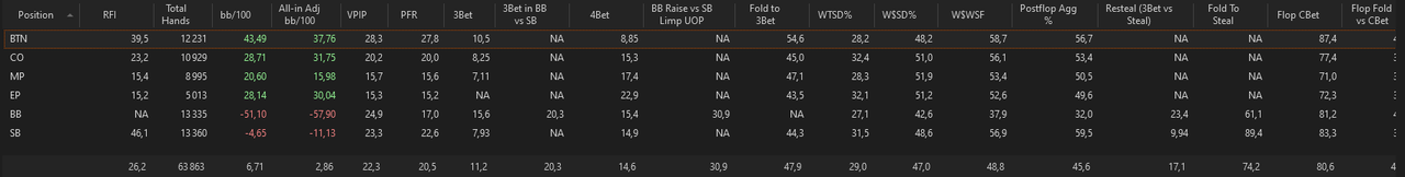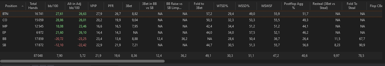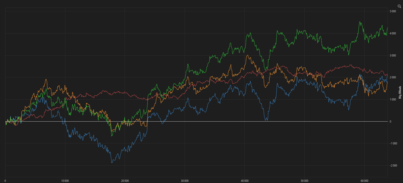 On run à 9,65bb/100 pour 9726 mains en All-In Adj. EV mais il manque quelques mains de Betclic. On doit être autour des 10bb/100.